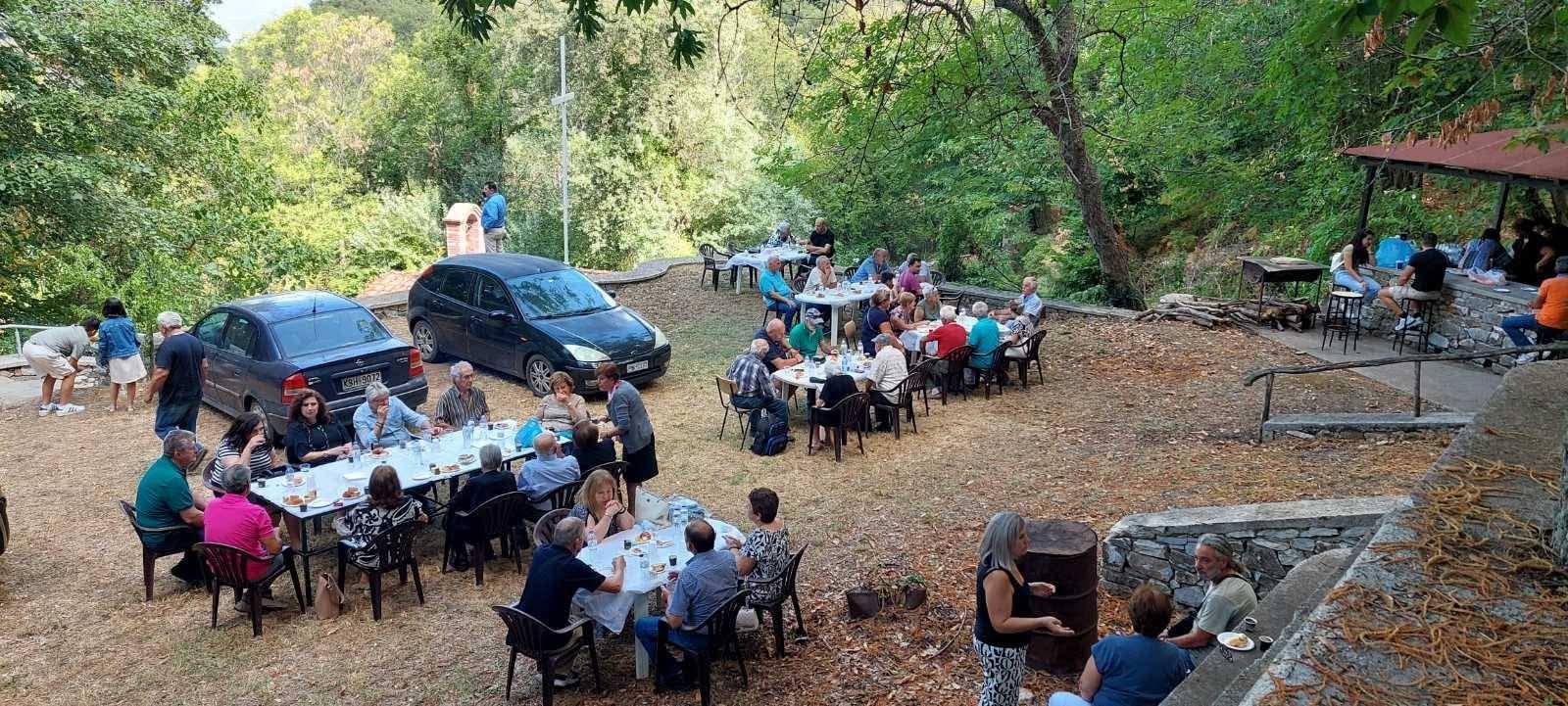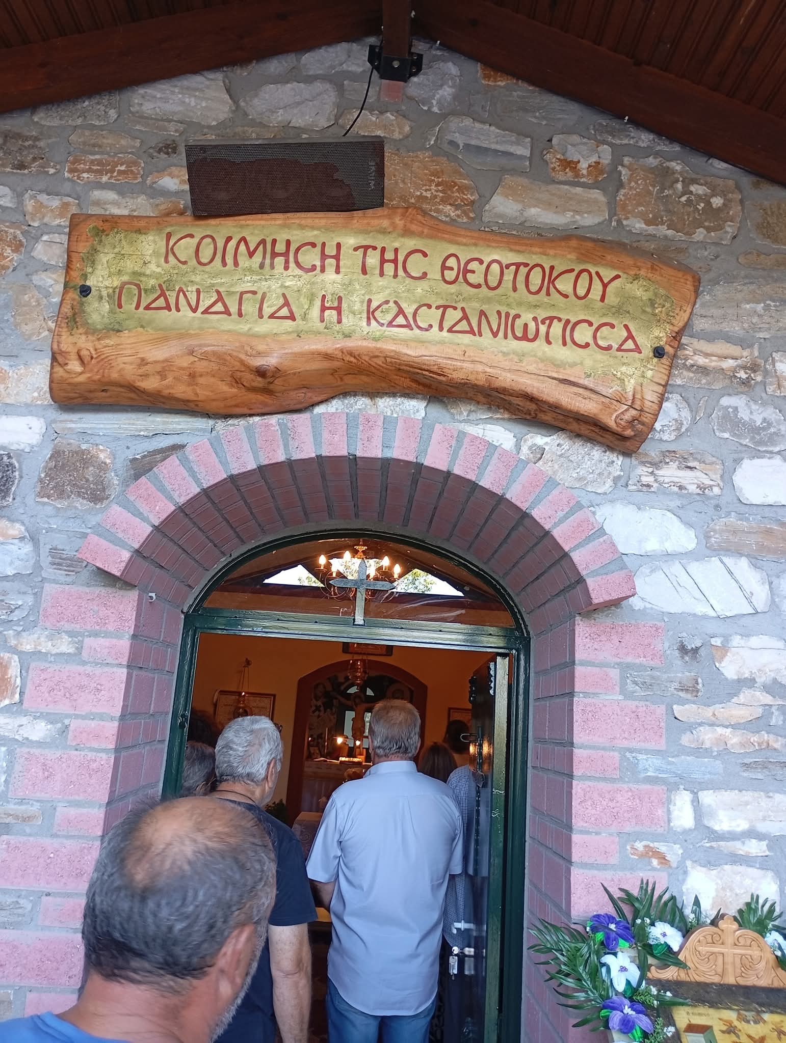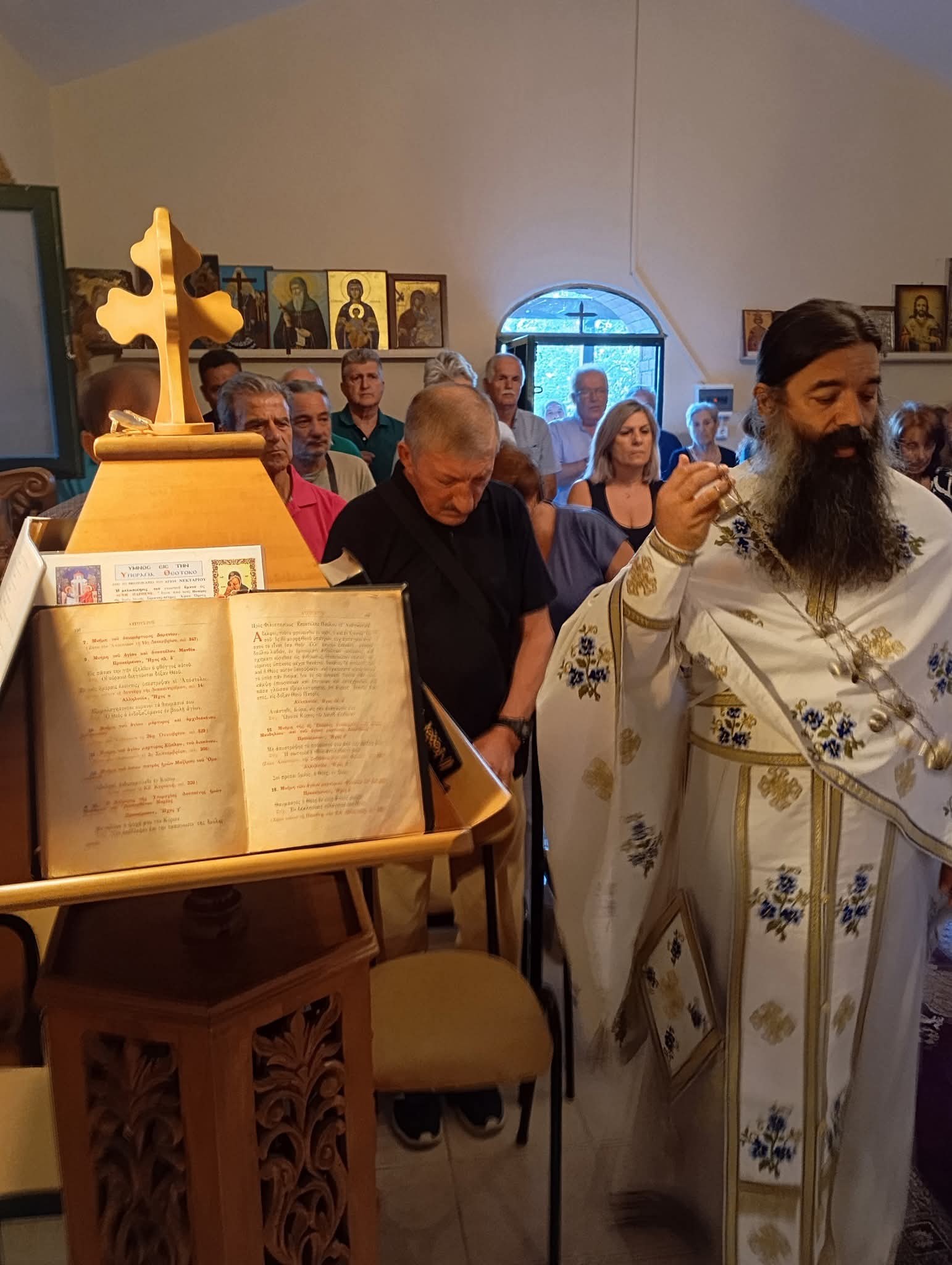 Στη σημερινή Θεία Λειτουργία, η ατμόσφαιρα ήταν γεμάτη ζεστασιά και κατάνυξη. Τα παιδιά άναβαν κεριά στολίζοντας τα ξύλινα τραπέζια, οι πιστοί ψέλνανε με ευλάβεια και σιωπηλή συγκίνηση, ενώ ο άνεμος έπαιζε ανάμεσα στα φύλλα του καστανόδασους, φέρνοντας μια απαλή μελωδία από τη φύση. Κάθε βλέμμα, κάθε κίνηση, κάθε προσευχή φανέρωνε την αγάπη και την πίστη που έχουν οι κάτοικοι για το εκκλησάκι.