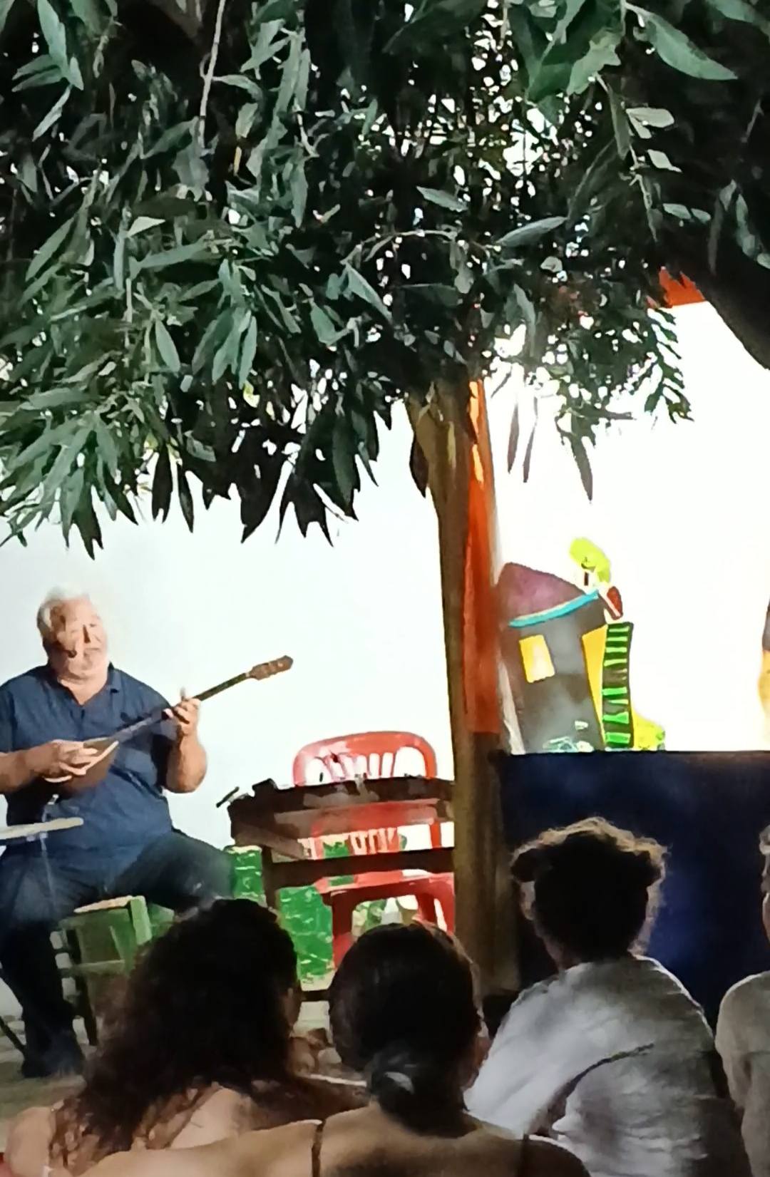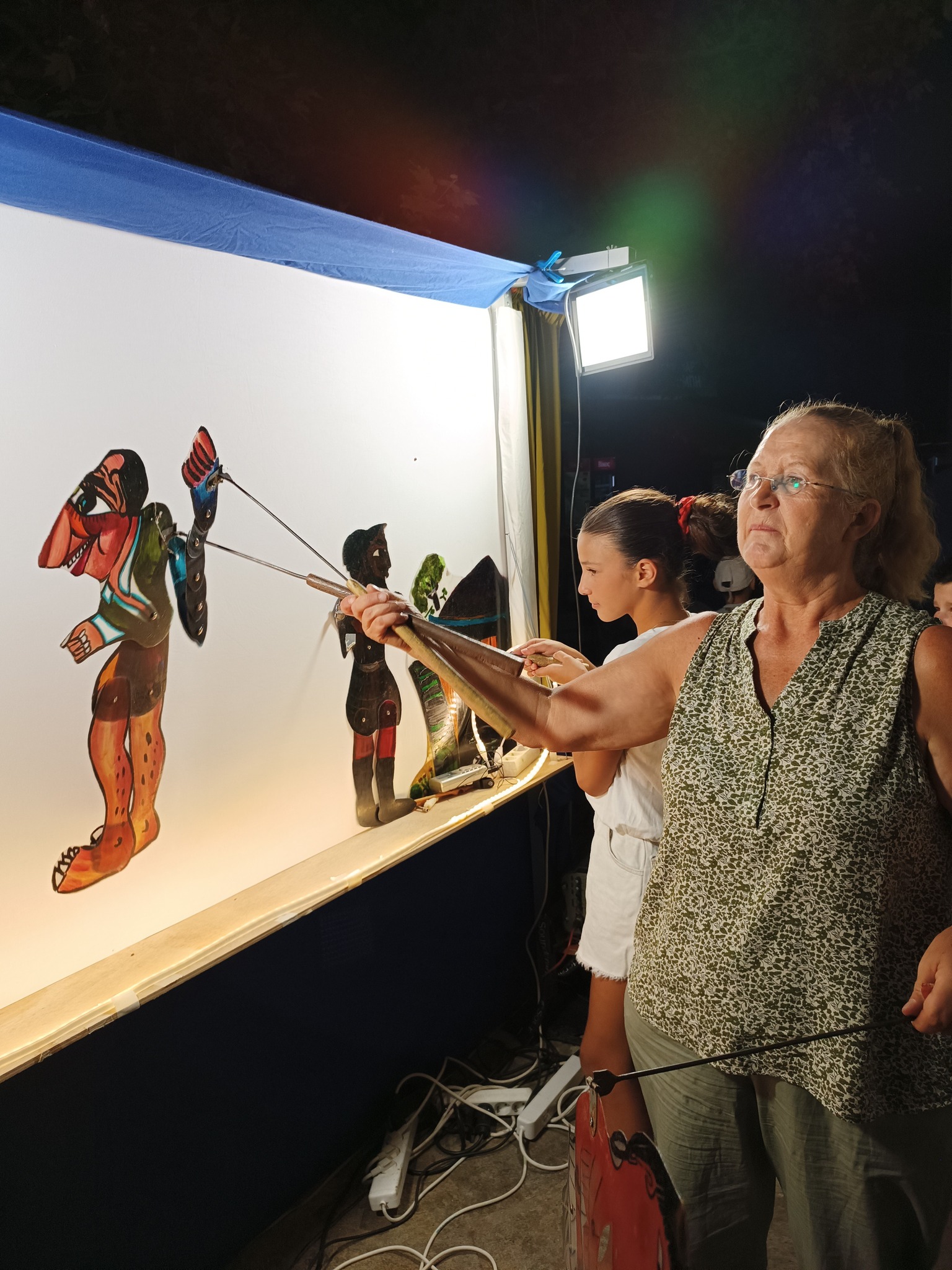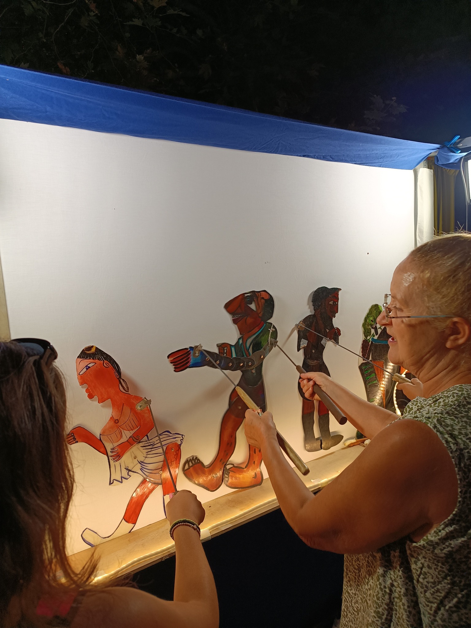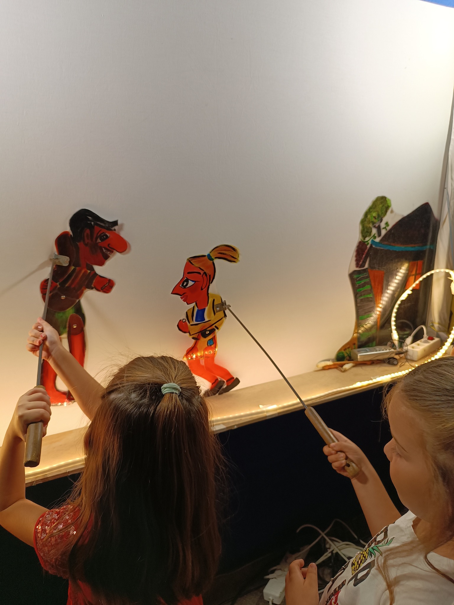 Τα παιδιά ενθουσιάστηκαν∙ δεν έχασαν στιγμή να περάσουν πίσω από τον μπερντέ, να παίξουν με τις φιγούρες, να γνωρίσουν τους ήρωες και να δοκιμάσουν τα μουσικά όργανα του θεάτρου σκιών.