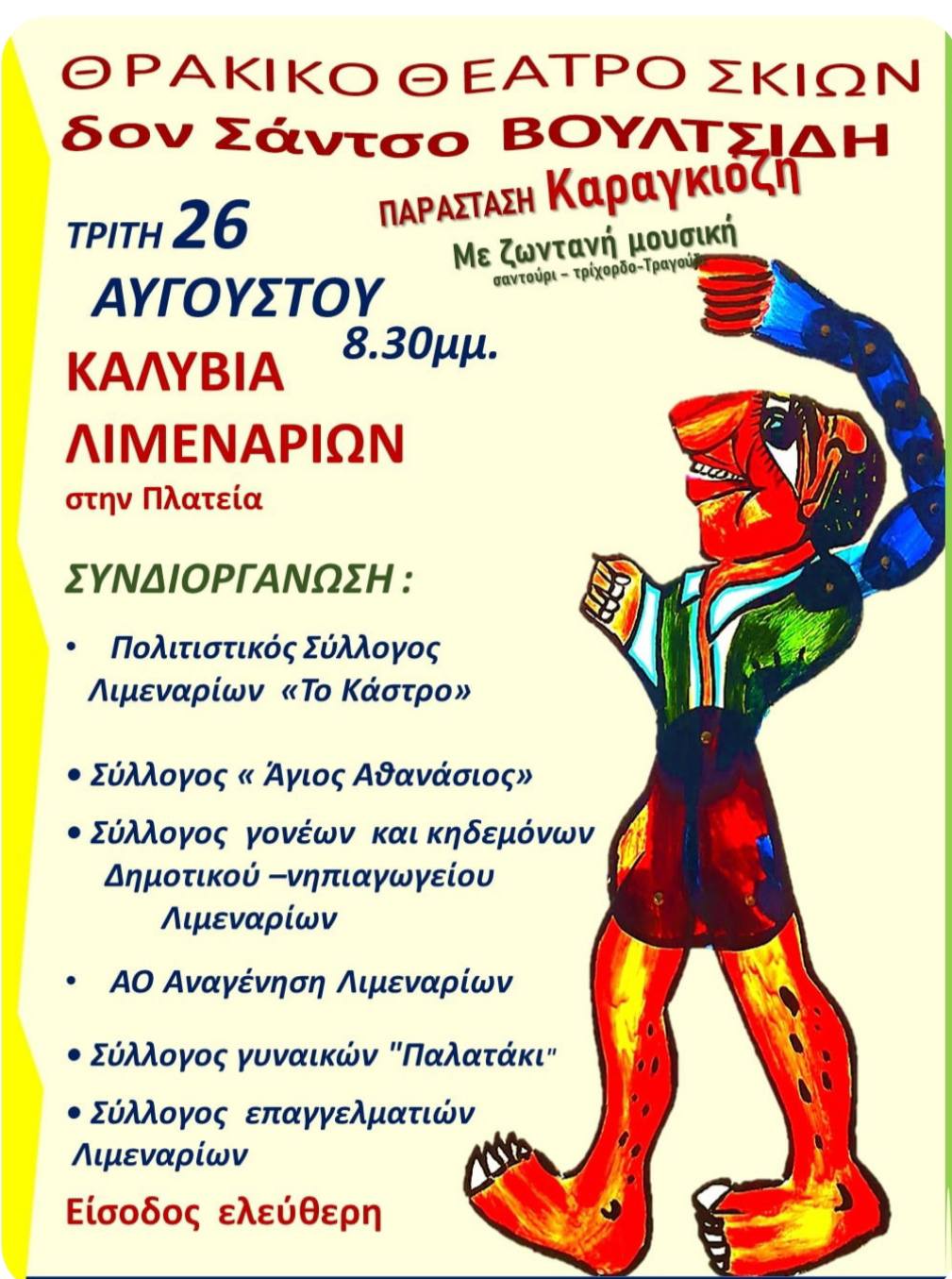 Μια υπέροχη παράσταση Καραγκιόζη είχαν την ευκαιρία να απολαύσουν όσοι ανταποκρίθηκαν στο κάλεσμα των φορέων του χωριού και βρέθηκαν στην πλατεία των Καλυβίων Λιμεναρίων.