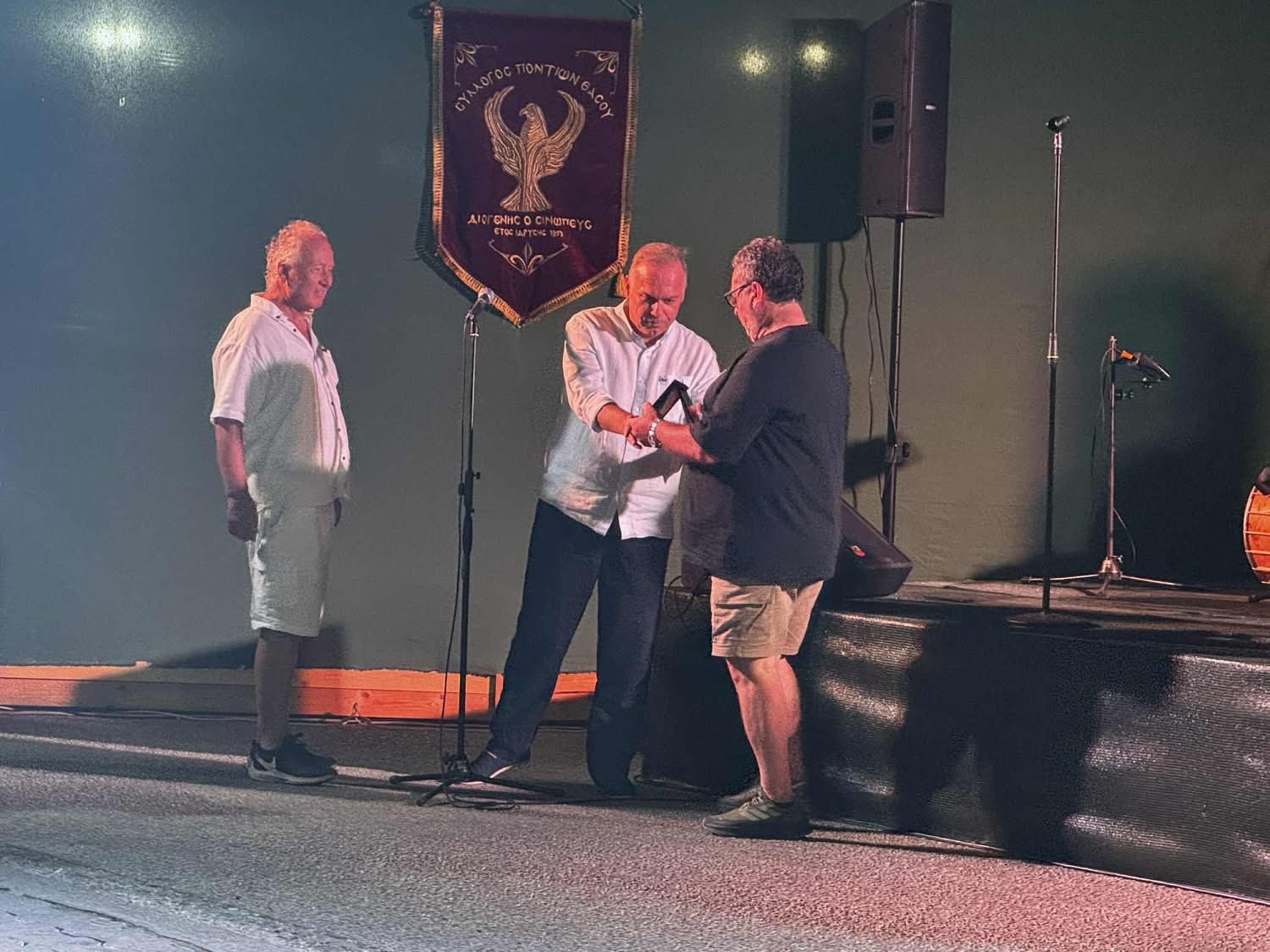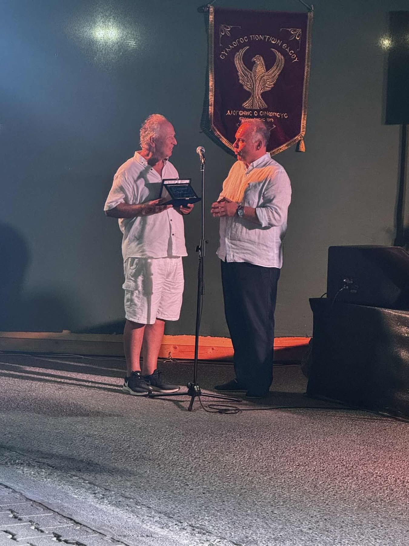✨ Στιγμή κορύφωσης: η απονομή της τιμητικής πλακέτας στον πρώτο πρόεδρο του Συλλόγου, Δημήτριο Σιδηρόπουλο, από τον Δήμαρχο. Μια στιγμή γεμάτη συγκίνηση και υπερηφάνεια, τιμή για την προσφορά και το έργο που έβαλε τα θεμέλια του συλλόγου μας.