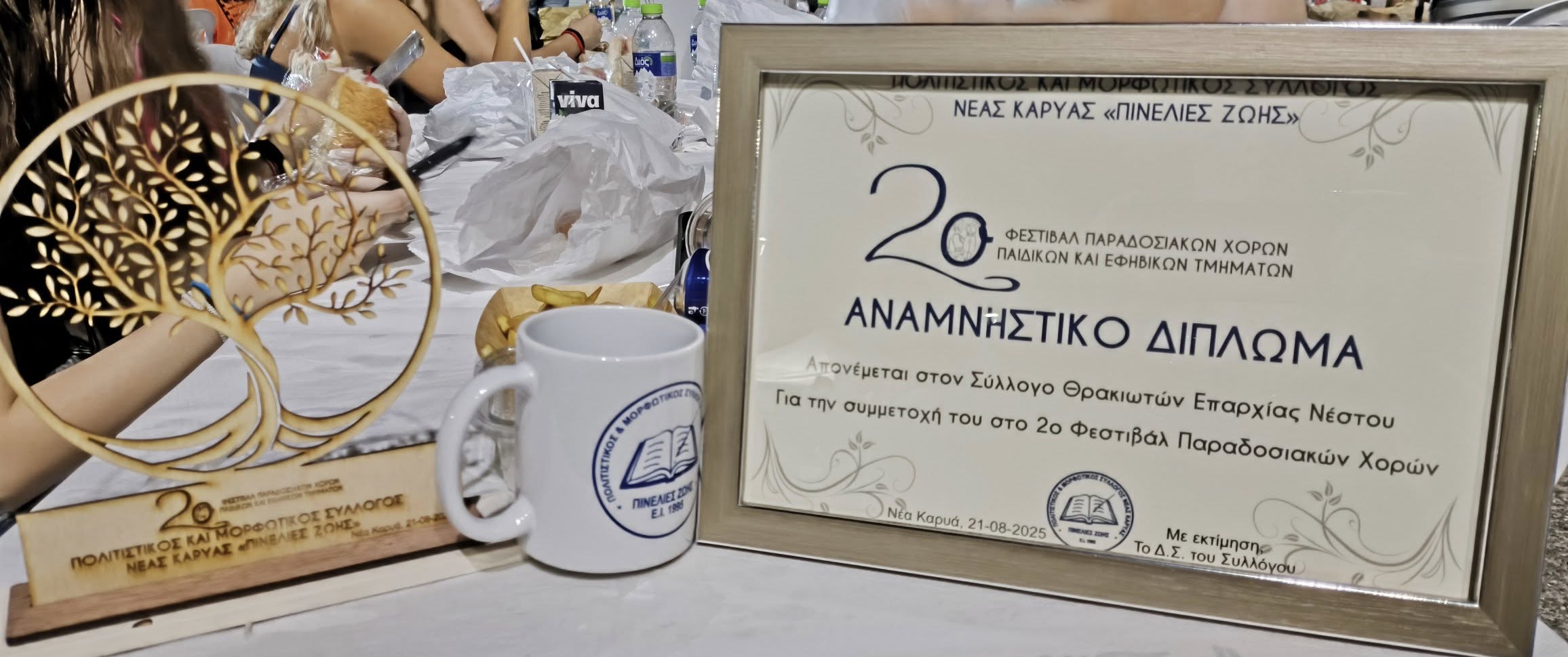 Ο σύλλογος Θρακιωτών επαρχίας Νέστου ιδρύθηκε το 1982 και λειτουργεί ανελλιπώς μέχρι σήμερα με έδρα του τη Χρυσούπολη. Αριθμεί 500 μέλη και αναπτύσσει πολλές δραστηριότητες, οι οποίες έχουν ως στόχο τους τη διατήρηση και προβολή της παράδοσής μας.